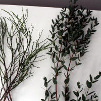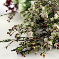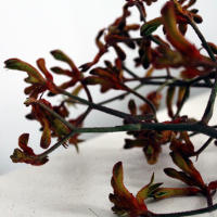 W bukiecie znalazły się czerwone róże „Red Naomi”, biała róża gałązkowa, drobne kwiaty chamelaucium (wax), niebieski mikołajek, pędy borówki czarnej, owoce winobluszczu pięciolistkowego, eukaliptus oraz kojarząca się z rogami renifera roślinka anigozantus tzw. kangurza łapa :)