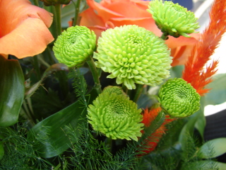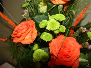 Dzisiaj prezentuję drugi bukiet z mieczykiem, tym razem zielono-pomarańczowy.