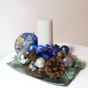 A kolejne dwa stroiki mają znaleźć się na wigilijnym stole, dodałam do nich świece i kolorystycznie dobrane dodatki.