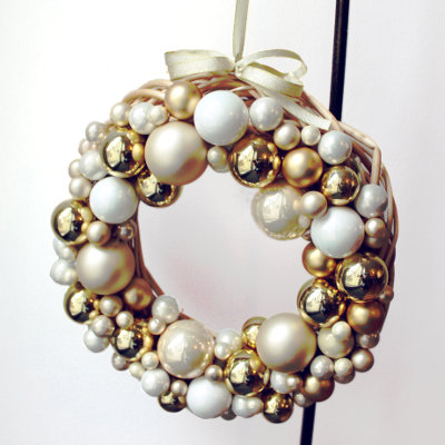 Bardzo lubię robić wianki na drzwi z szyszkami, bombkami, a nawet z suszonymi kwiatami. Tutaj kolorze fioletu z suszoną niebieską hortensją oraz bombkowy w stylu glamour.