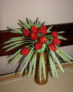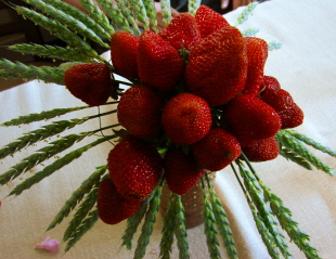 A środek wypełniłam truskawkami umocowanymi na drutach florystycznych.