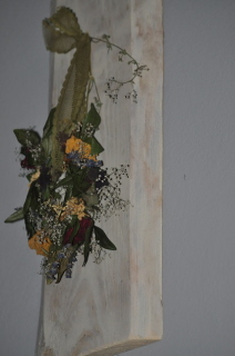 Zasuszone wianki umieściłam na pojedynczych deseczkach i zawiesiłam na klatce schodowej. Zajęły miejsce po dekoracji bożonarodzeniowej :)