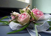 Bransoletka oczywiście powinna pasować kolorystycznie do sukienki. Tutaj możemy zrobić to na dwa sposoby, dopasowując barwę kwiatów lub wstążki. W przypadku kolorowej wstążki kwiaty powinny być w neutralnych barwach (np. kremowych).