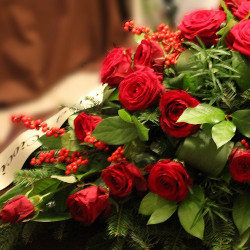 Dzisiaj o smutnej dekoracji na pogrzeb, którą robiłam jakiś czas temu. Koleżanka zamówiła u mnie wiązankę pogrzebową dla cioci. Kompozycja miała nawiązywać do jej góralskich korzeni. Pierwsza myśl związana z motywem góralskim to czerwone korale. Świetnie nawiązywały do tego pędy ostrokrzewu okółkowego, oblepione czerwonymi jagodami.