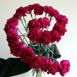 Szybkie skojarzenia kwiatowe i mam. Spiralny, graficzny bukiet z amarantowych goździków :)