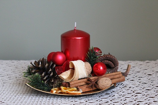 Dekoracje bożonarodzeniowe z szyszek.