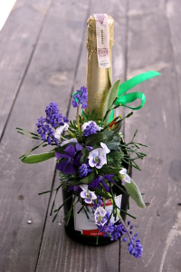 Wiosenna dekoracja na butelkę.